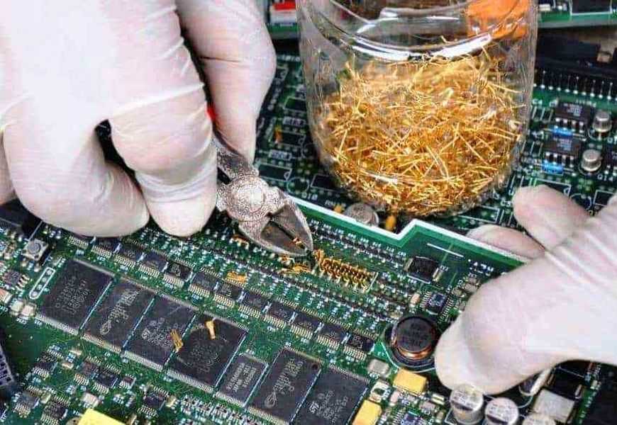 Есть несколько методик извлечения драгметалла из комплектующих компьютерного оборудования и оргтехники. Все технологии подразумевают использование химических реагентов.