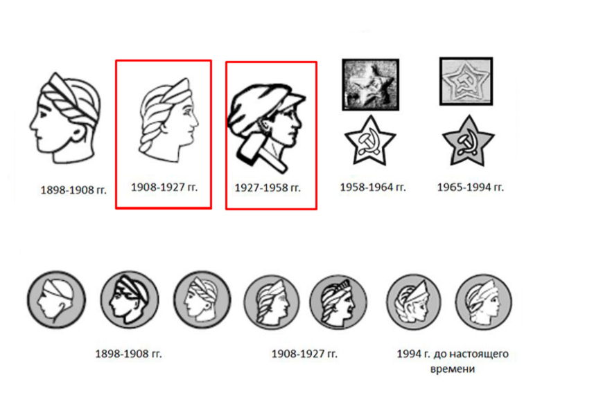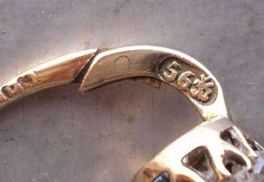 На клейме тех времен была изображена женская голова в кокошнике. Но уже с 1927 г. стали применять другой вариант. На нем была изображена голова рабочего с молотом. Все виды клейма встречаются на старинных изделиях. Однако если изучаются внешние признаки золота 56 пробы, можно заметить, что обозначение на ней отличалось уже тогда. Встречается клеймо с буквами. Это может означать инициалы ювелира. Существует еще один вариант – нанесение инициалов управляющего пробирного округа.