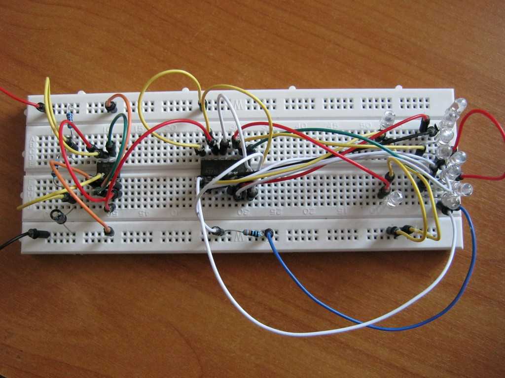 Собираем наши бегущие огни. На макетной плате они выглядят примерно вот так: