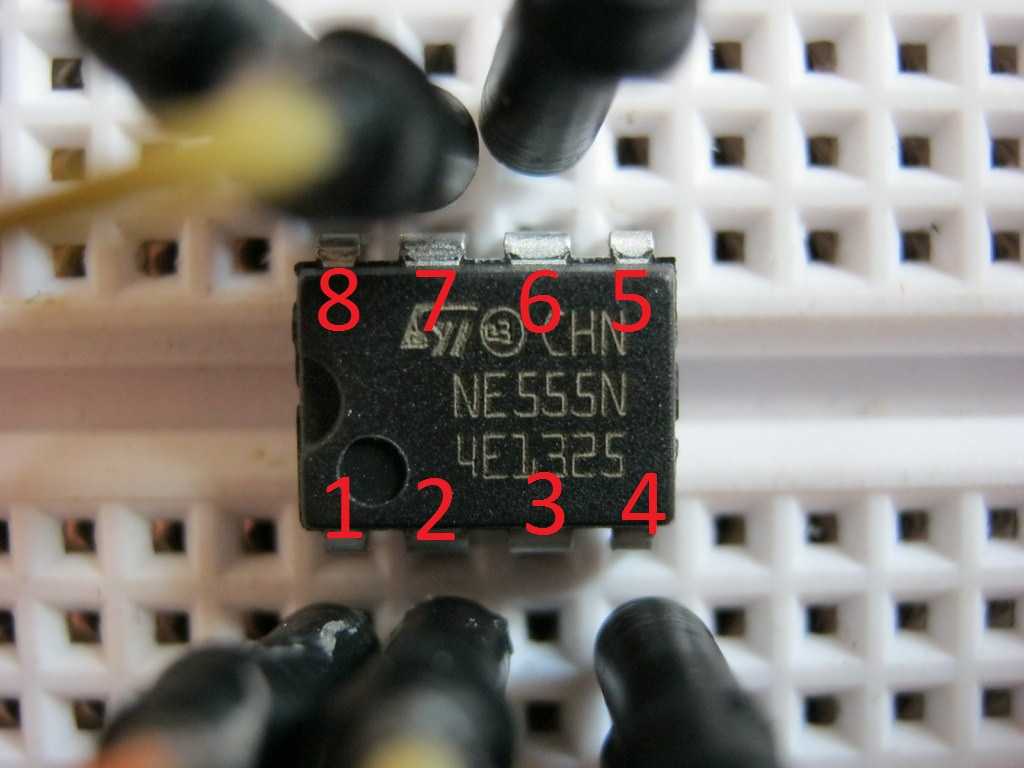 Значит, на микросхеме NE555N выводы нумеруются таким образом: