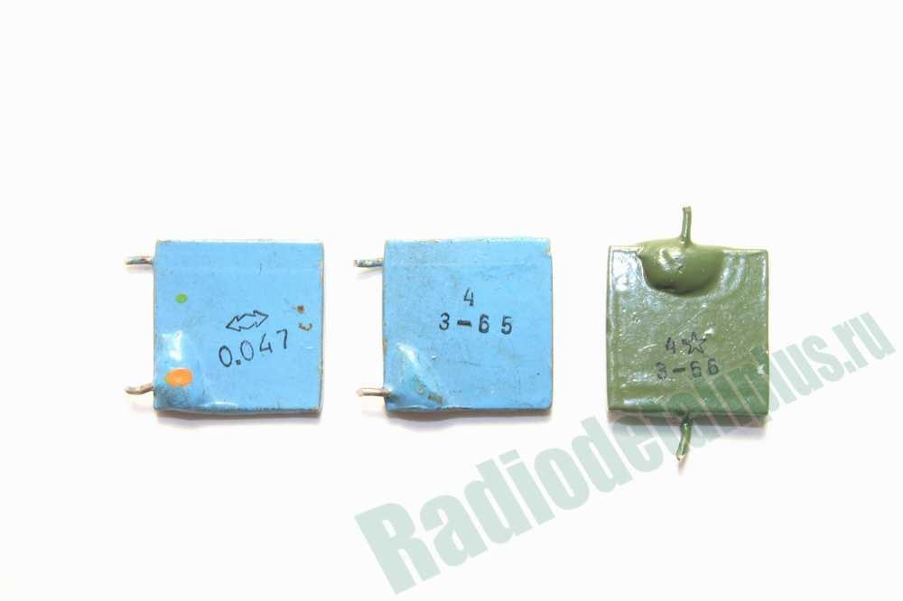 - Конденсаторы в пластиковом корпусе: К10-17, К10-23, К10-28, К10-43, К10-46, К10-47.