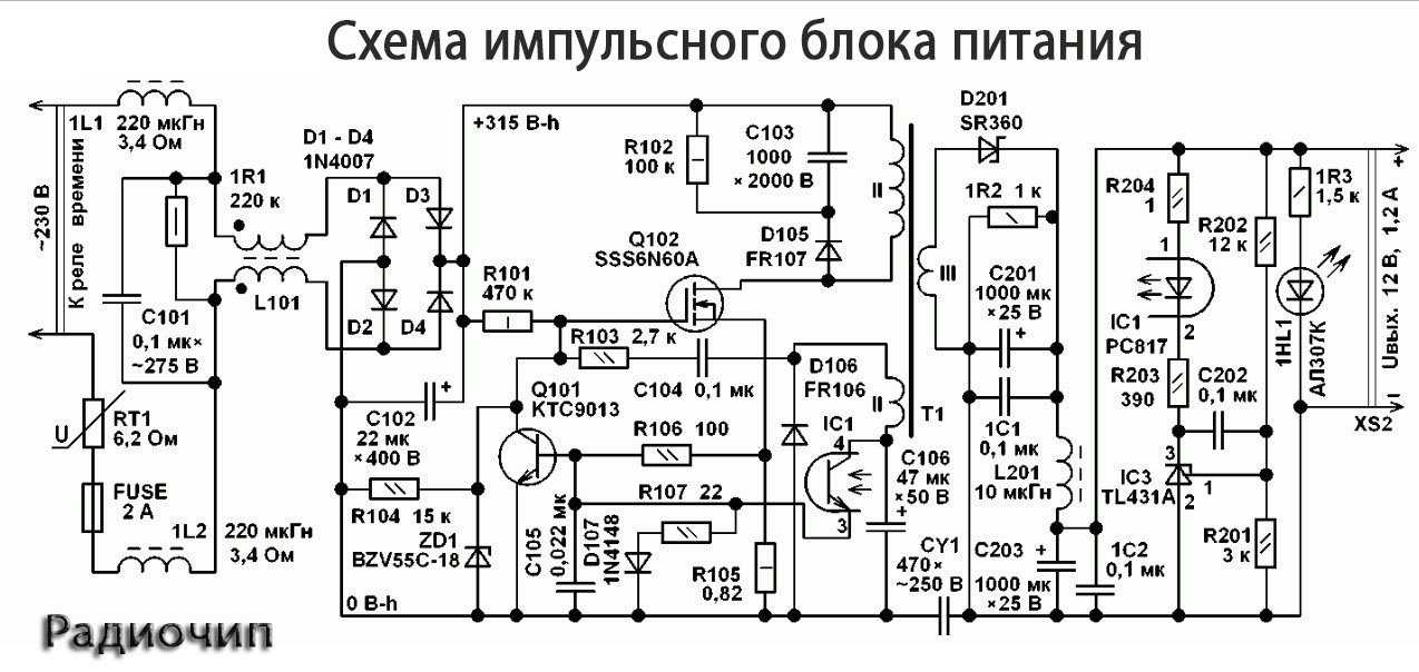 Импульсный блок питания на транзисторах и таймер на КР512ПС10 (12В-1,2А)