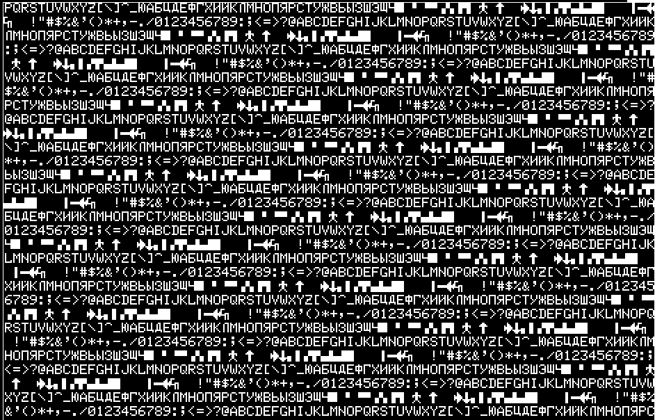 Если у кого-то возникнет желание собрать программу самостоятельно, можно воспользоваться онлайн-ассемблером:https://www.asm80.com/На нём же можно получить дамп. А собранную программу проверить на онлайн-эмуляторе:https://rk86.ru/Вышеприведённая программа должна выдать нам вот такой результат на экран: