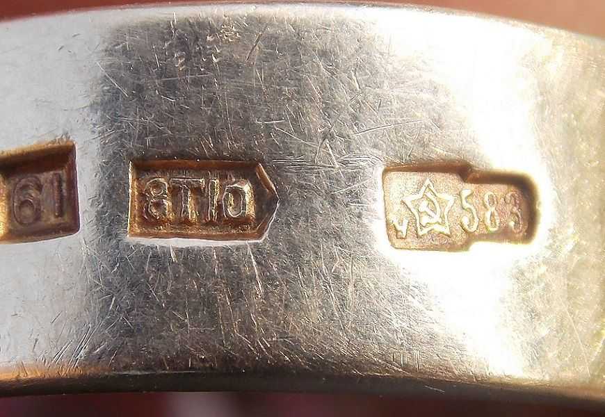 Сегодня можно встретить украшение со звездочкой. Они не имеют современной пробы. Но с тыльной стороны изделий все же есть клеймо – пятиконечная звезда, внутри нанесен серп и молот. Так выглядит советское кольцо 583 пробы. Не следует сразу подозревать подделку.