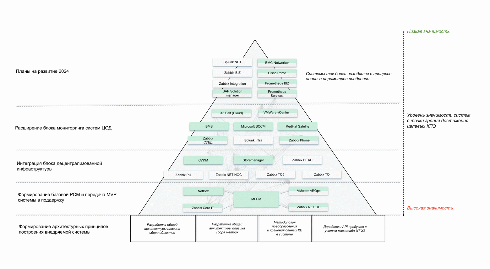 Как это выглядит: взаимосвязь всех элементов ИТ-окружения и пирамида внедрения