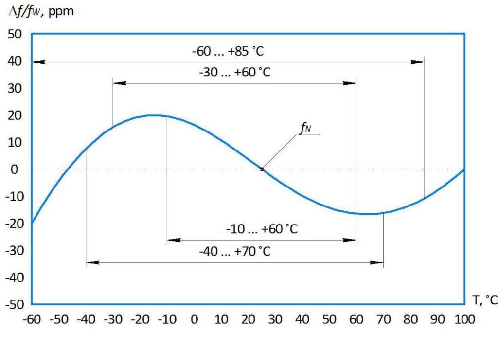 (т.е. -30…+60°С), класс по уходу частоты в диапазоне температур «С» (т.е.