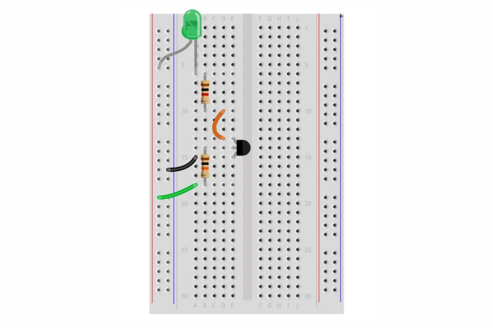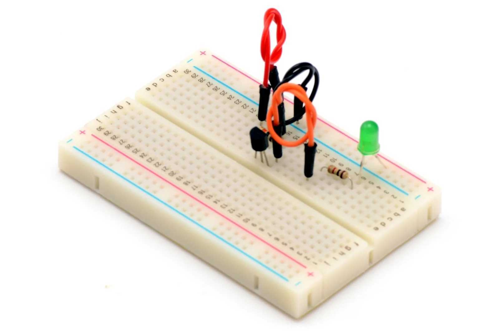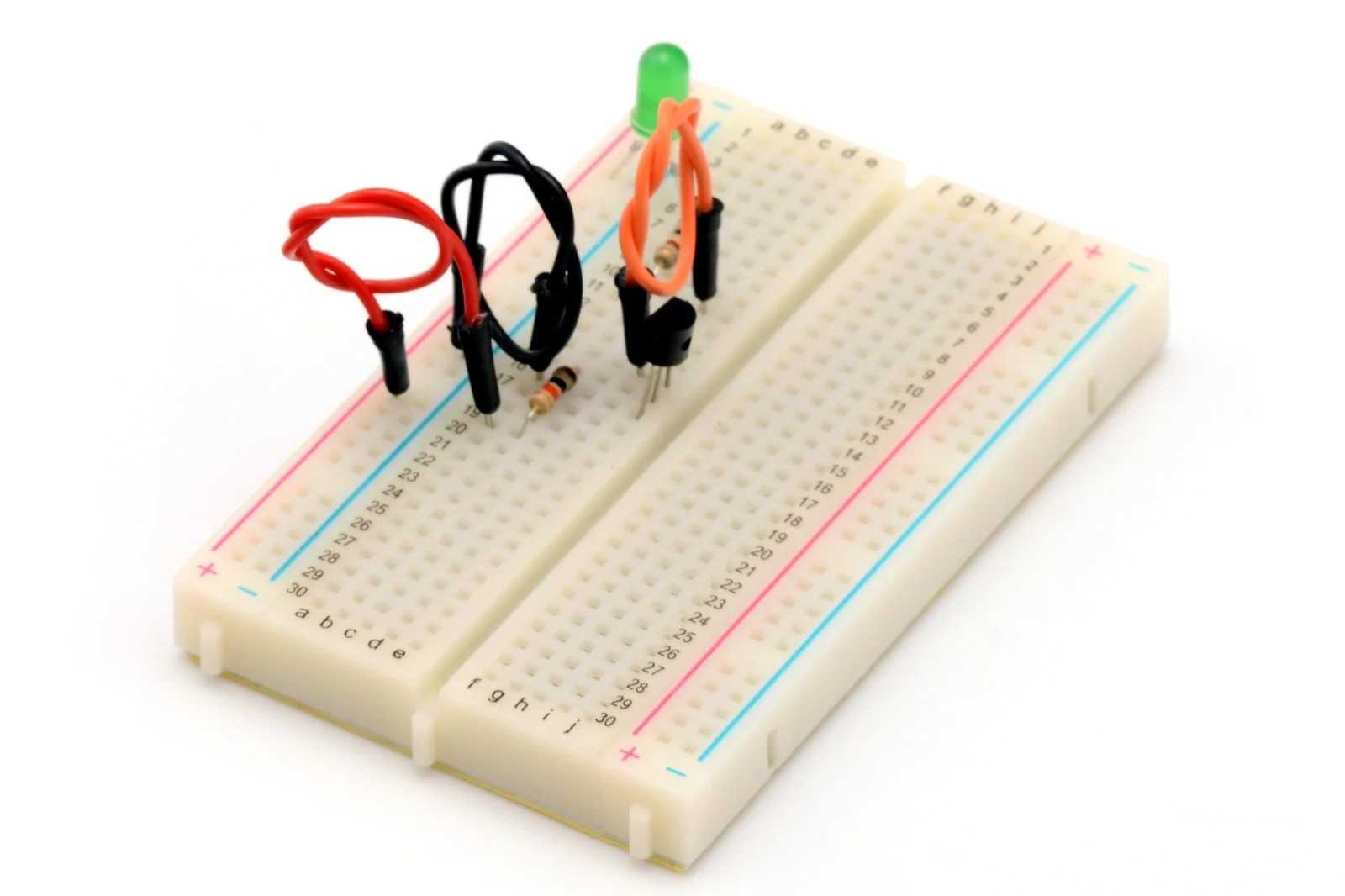 Итак, теория позади. Пришло время проверить, как это работает на практике. О транзисторах можно очень много и долго рассказывать, но мы обсудим только их основные принципы работы. Мы начнем со схемы, которая будет использовать транзистор в качестве ключа, управляющего освещением светодиода. Таким образом, контролируя ток базы, мы сможем включать и выключать диод, подключенный к транзистору.