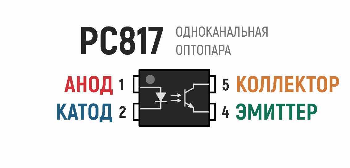 Перед нами одноканальное устройство, его оптический канал — закрыт. Он состоит из светового диода и фотографического транзистора, которые находятся в корпусе smd. Они, как правило, находятся в большей части импульс-блоков питания в обособленной цепи, где применяется обратная связь. Гальваническая развязка в таких схемах pc817 должна быть идеальной.