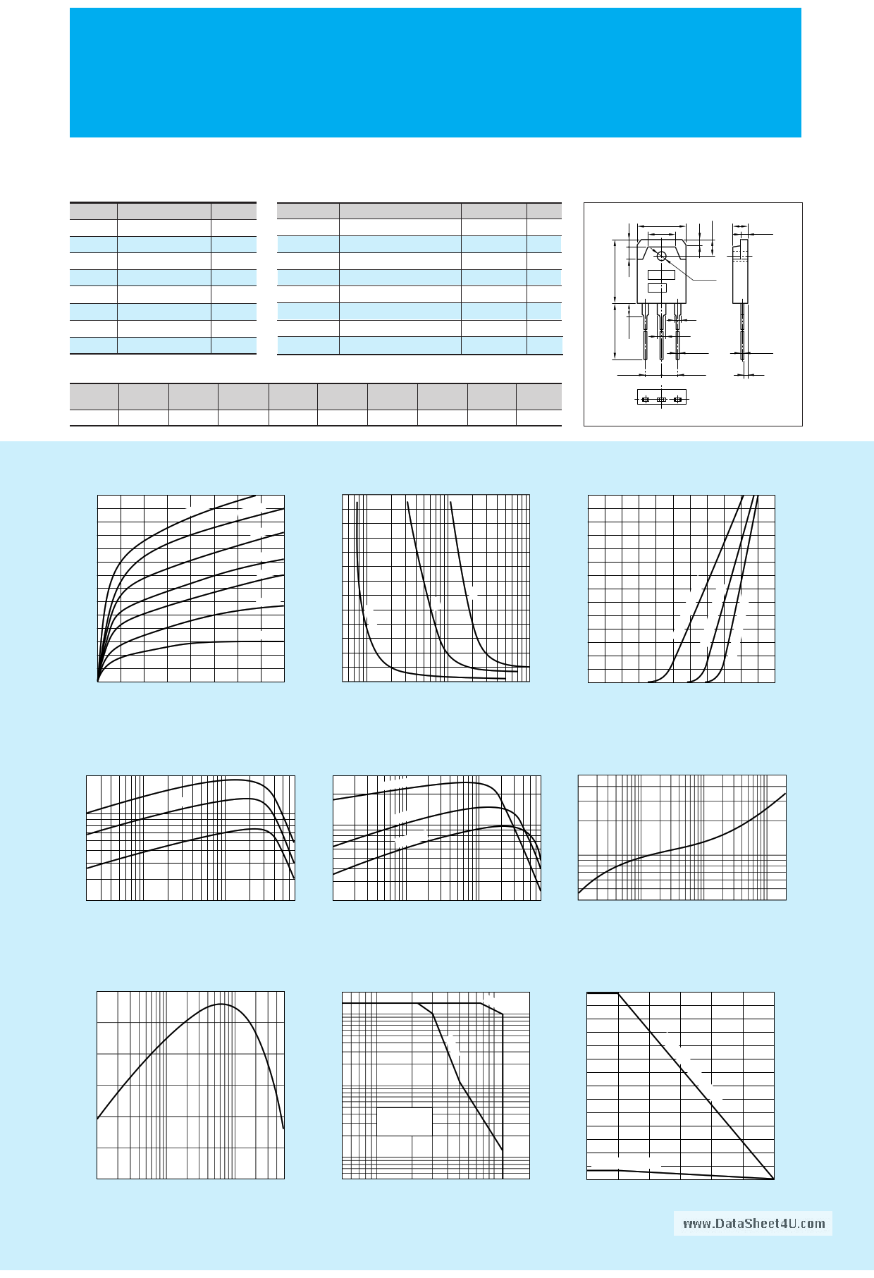 www.DataSheet4U.com Silicon NPN Triple Diffused Planar Transistor (Switching Transistor) Application : Humidifier, DC-DC Converter, and General Purpose sAbsolute maximum ratings (Ta=25°C) Symbol VCBO 200 V VCEO 120 V VEBO IC IB PC Tj Tstg 8 7(Pulse14) 3 sElectrical Characteristics Symbol ICBO VCB=200V IEBO VEB=8V V(BR)CEO IC=50mA hFE VCE=4V, IC=3A VCE(sat) IC=3A, IB=0.3A VBE(sat) IC=3A, IB=0.3A fT VCE=12V, IE=–0.5A COB VCB=10V, f=1MHz (Ta=25°C) 100max µA 100max µA 120min V 0.5max V 1.2max V 30typ MHz 110typ pF sTypical Switching Characteristics (Common Emitter) VCC RL IC VBB1 VBB2 IB1 (V) (Ω) (A) (V) (V) (A) 50 16.7 3 IB2 (A) ton (µs) 0.5max tstg (µs) 3.0max tf (µs) 0.5max External Dimensions MT-100(TO3P) 15.6±0.4 9.6 4.8±0.2 2.0±0.1 a ø3.2±0.1 b 5.45±0.1 5.45±0.1 1.4 I C– V CE Characteristics (Typical) 7 4 40mA 3 20mA 2 IB=10mA 1 01 234 Collector-Emitter Voltage VCE(V) V CE( s a t ) – I B Characteristics (Typical) 2.6 0.005 0.01 Base Current IB(A) 0.5 1 I C– V BE Temperature Characteristics (Typical) (VCE=4V) 7 0 0.5 1.0 1.1 Base-Emittor Voltage VBE(V) h FE– I C Characteristics (Typical) (VCE=4V) 200 h FE– I C Temperature Characteristics (Typical) 300 (VCE=4V) 25˚C θ j-a– t Characteristics 5 Collector Current IC(A) 57 Collector Current IC(A) 0.5 f T– I E Characteristics (Typical) (VCE=12V) 30 –0.01 Emitter Current IE(A) –5 Safe Operating Area (Single Pulse) 20 100µs 10 Collector-Emitter Voltage VCE(V) Pc–Ta Derating 0 25 50 |