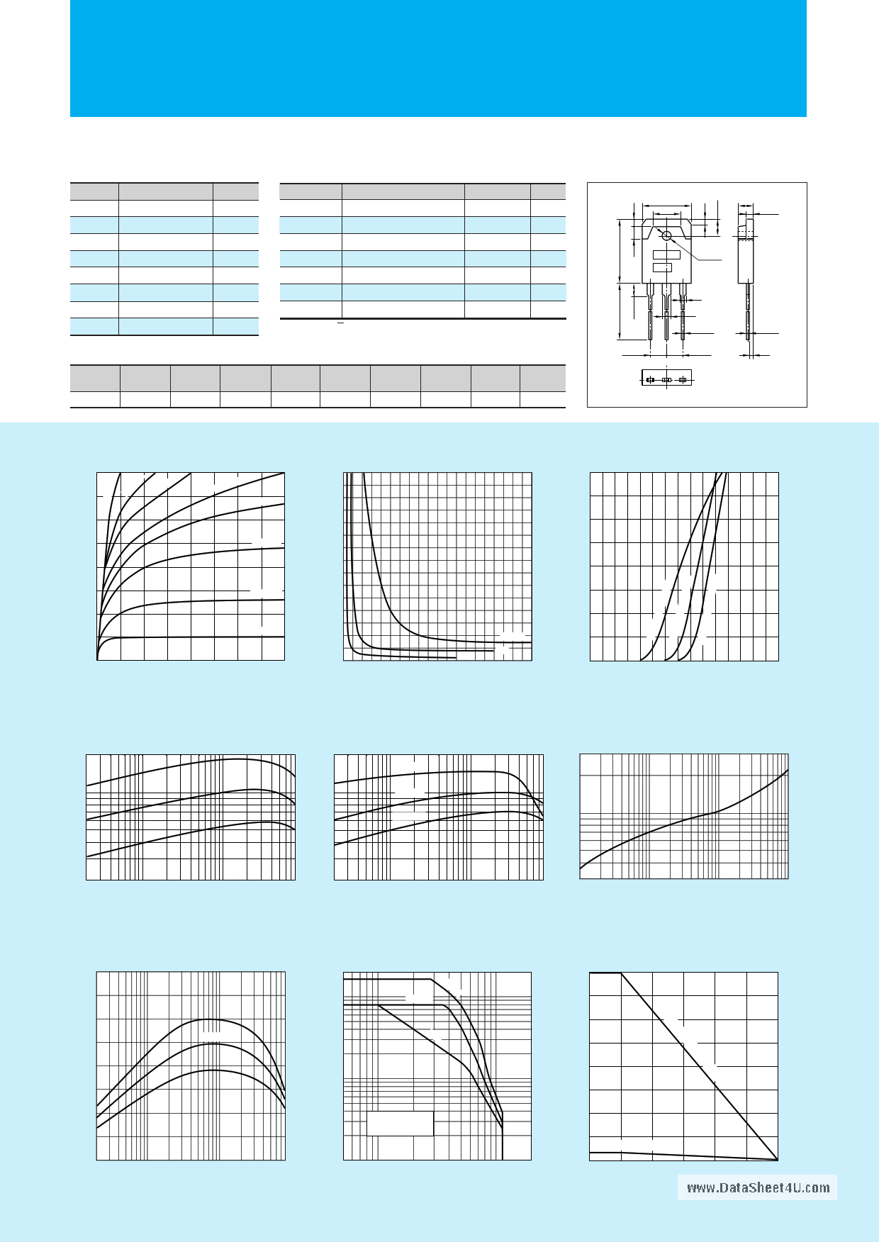 www.DataSheet4U.com Silicon NPN Triple Diffused Planar Transistor (Complement to type 2SA1694) Application : Audio and General Purpose sAbsolute maximum ratings (Ta=25°C) Symbol VCBO 160 V VCEO 120 V VEBO IC IB PC Tj Tstg 6 sElectrical Characteristics (Ta=25°C) ICBO IEBO V(BR)CEO hFE VCE(sat) fT COB Conditions VCB=160V VEB=6V IC=50mA VCE=4V, IC=3A IC=3A, IB=0.3A VCE=12V, IE=–0.5A VCB=10V, f=1MHz 2SC4467 10max 10max 120min 50min∗ 1.5max 20typ 200typ Unit µA µA V ∗hFE Rank O(50 to100), P(70 to140), Y(90 to180) sTypical Switching Characteristics (Common Emitter) VCC RL IC VBB1 VBB2 IB1 (V) (Ω) (A) (V) IB2 ton tstg tf (A) (µs) (µs) (µs) –0.4 0.13typ 3.50typ 0.32typ External Dimensions MT-100(TO3P) 15.6±0.4 9.6 4.8±0.2 2.0±0.1 a ø3.2±0.1 b 5.45±0.1 5.45±0.1 1.4 I C– V CE Characteristics (Typical) 8 IB=10mA 0 12 34 Collector-Emitter Voltage VCE(V) V CE( s a t ) – I B Characteristics (Typical) 3 I C– V BE Temperature Characteristics (Typical) (VCE=4V) 8 IC=8A 4A 0 0.1 0.2 0.3 0.4 0.5 0.6 0.7 0.8 0.9 1.0 Base Current IB(A) 6 0 0.5 1.0 1.5 Base-Emittor Voltage VBE(V) h FE– I C Characteristics (Typical) 200 (VCE=4V) Typ h FE– I C Temperature Characteristics (Typical) 200 (VCE=4V) 100 25˚C θ j-a– t Characteristics 3 Collector Current IC(A) 58 Collector Current IC(A) 58 f T– I E Characteristics (Typical) (VCE=12V) 40 –0.02 Emitter Current IE(A) –8 Safe Operating Area (Single Pulse) 20 10 100ms 5 Collector-Emitter Voltage VCE(V) Pc–Ta Derating 0 25 50 |
