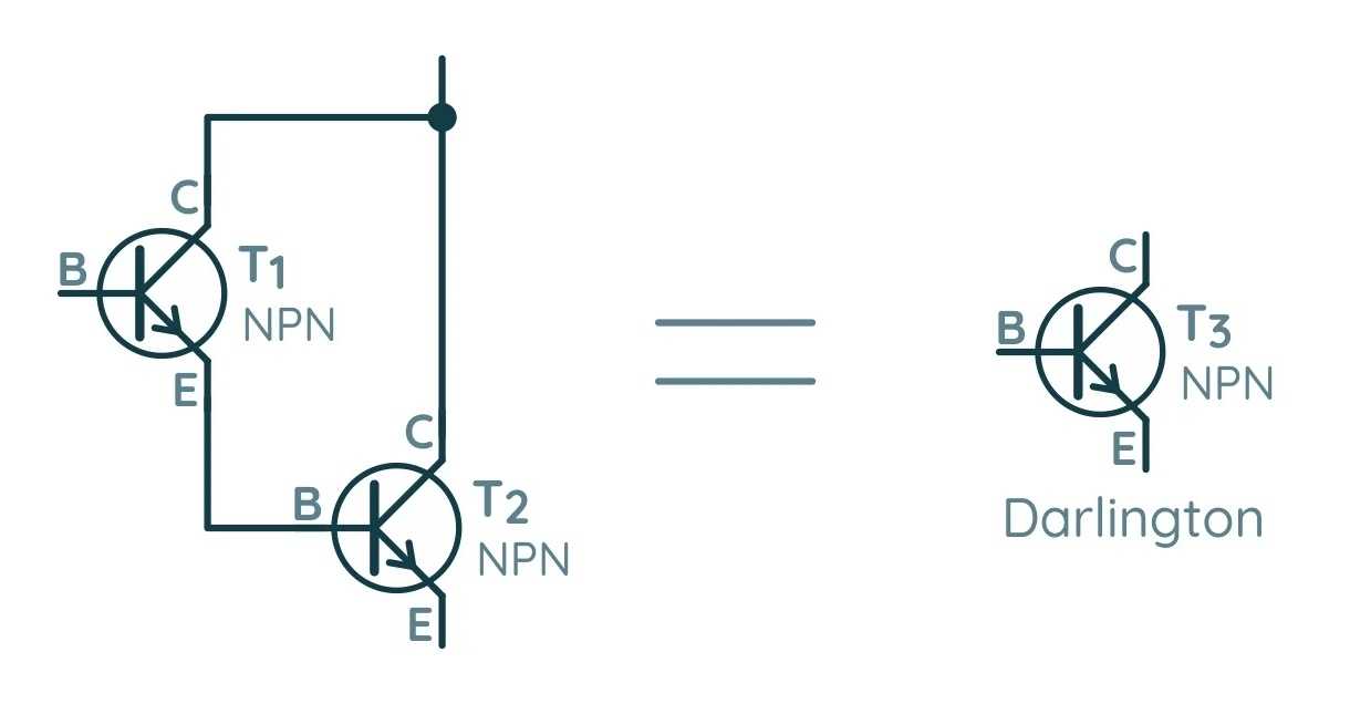 Примерное подключение двух биполярных транзисторов в схему Дарлингтона