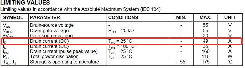 Как мы видим, транзистор в легкую может протащить через себя 49 Ампер!!!