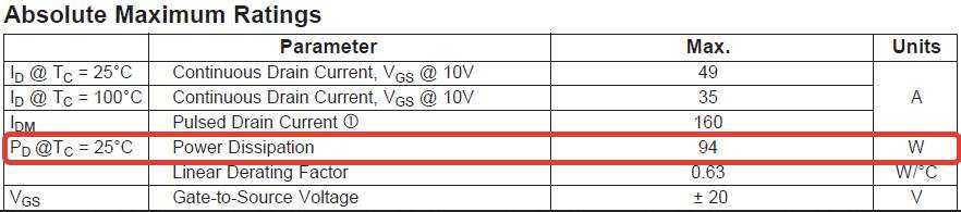 Максимальная рассеиваемая мощность PD — это мощность, которую транзистор может рассеять на себе, превращая эту мощность в тепло. В нашем случае это 94 Ватта. Но здесь также должны быть соблюдены различные условия — это температура окружающей среды, а также есть ли у транзистора радиатор.