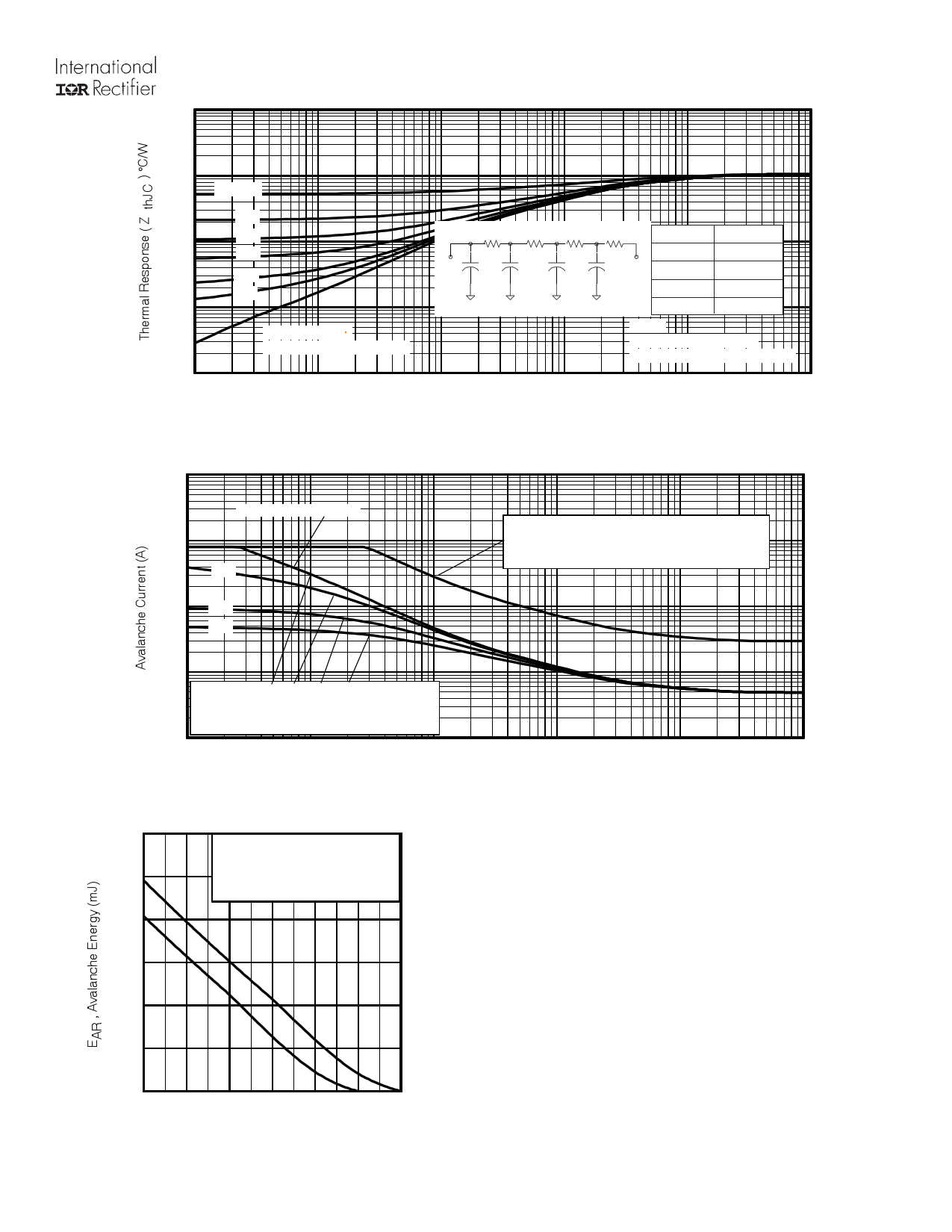 τJ τJ τ1 τ1 R1R1 R2R2 τ2 τ2 R3R3 τ3 τ3 R4R4 τCτ Ri (°C/W) τi (sec) 0.000003 τ4τ4 0.49731 0.001301 CiC= iτiRiiRi 0.26766 0.008693 Fig 13. Maximum Effective Transient Thermal Impedance, Junction-to-Case 1000 pulsewidth, tav, assuming ∆Tj = 150°C and Tstart =25°C (Single Pulse) pulsewidth, tav, assuming ∆Τ j = 25°C and Tstart = 150°C. Fig 14. Typical Avalanche Current vs.Pulsewidth 1.0E-01 excess of Tjmax. This is validated for every part type. 2. Safe operation in Avalanche is allowed as long asTjmax is not exceeded. 3. Equation below based on circuit and waveforms shown in Figures 16a, 16b. 4. PD (ave) = Average power dissipation per single avalanche pulse. 5. BV = Rated breakdown voltage (1.3 factor accounts for voltage increase 6. Iav = Allowable avalanche current. 7. ∆T = Allowable rise in junction temperature, not to exceTejmdax (assumed as 25°C in Figure 14, 15). tav = Average time in avalanche. D = Duty cycle in avalanche = tav ·f ZthJC(D, tav) = Transient thermal resistance, see Figures 13) 25 50 75 100 125 150 175 Fig 15. Maximum Avalanche Energy vs. Temperature PD (ave) = 1/2 ( 1.3·BV·Iav) = DT/ ZthJC Iav = 2DT/ [1.3·BV·Zth EAS (AR) = PD (ave)·tav www.irf.com Preview 5 Page |