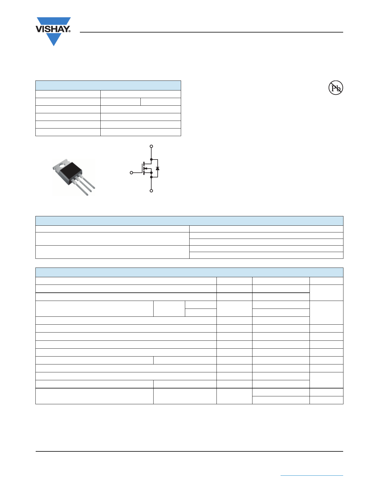 VDS VGS RG RD D.U.T. Pulse width ≤ 1 µs Duty factor ≤ 0.1 % +- VDD Fig. 10a — Switching Time Test Circuit VDS 90 % VGS td(on) tr td(off) tf Fig. 10b — Switching Time Waveforms THE PRODUCT DESCRIBED HEREIN AND THIS DATASHEET ARE SUBJECT TO SPECIFIC DISCLAIMERS, SET FORTH AT www.vishay.com/doc?91000 Preview 5 Page |