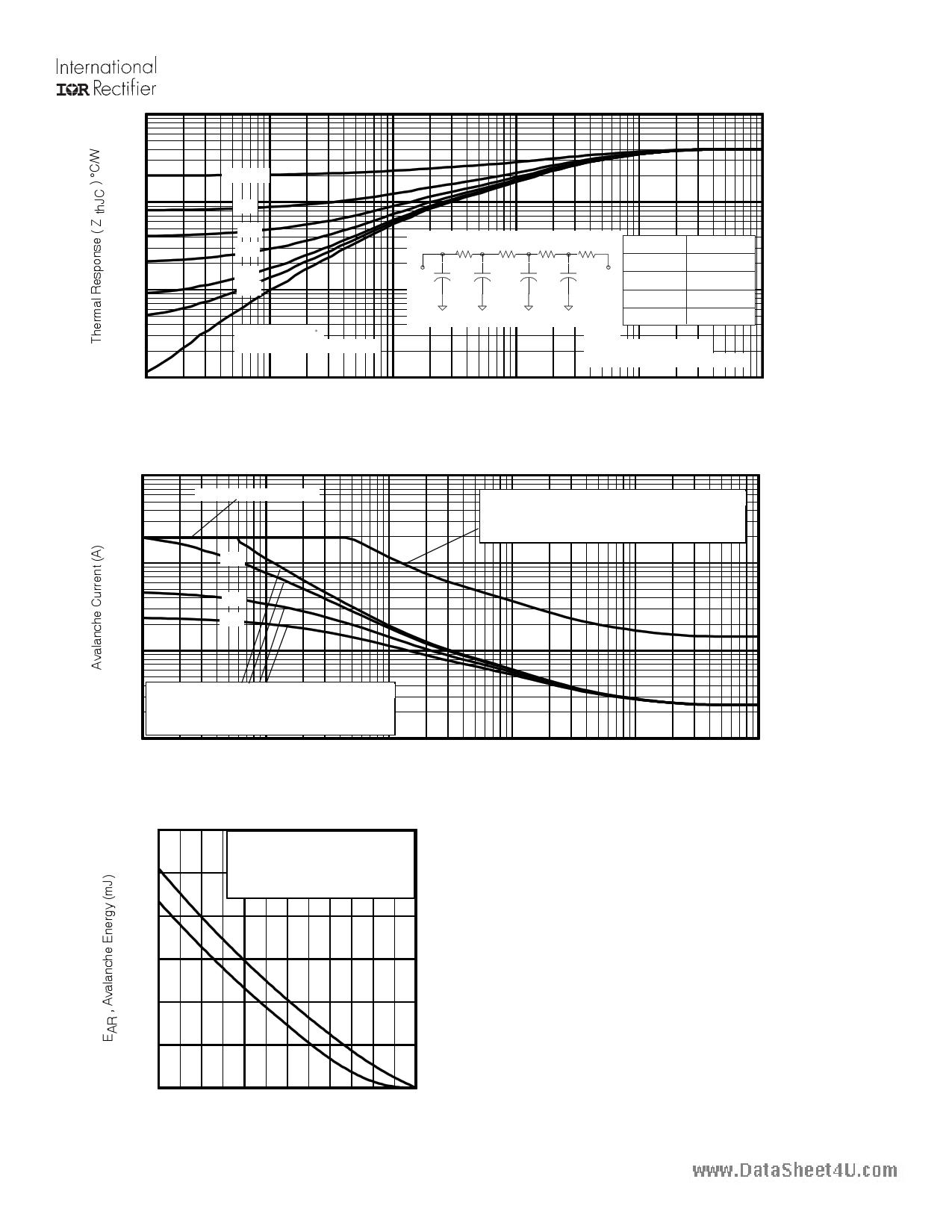 τJ τJ τ1 τ1 R1R1 R2R2 τ2 τ2 R3R3 τ3 τ3 R4R4 τCτ Ri (°C/W) τi (sec) 0.000025 τ4τ4 0.19057 0.001656 CiC= iτiRiiRi 0.10481 0.008408 Fig 13. Maximum Effective Transient Thermal Impedance, Junction-to-Case 0.1 pulsewidth, tav, assuming ∆Tj = 150°C and Tstart =25°C (Single Pulse) 100 0.01 0.05 pulsewidth, tav, assuming ∆Τ j = 25°C and Tstart = 150°C. Fig 14. Typical Avalanche Current vs.Pulsewidth 1.0E-01 25 50 75 100 125 150 175 excess of Tjmax. This is validated for every part type. 2. Safe operation in Avalanche is allowed as long asTjmax is not exceeded. 3. Equation below based on circuit and waveforms shown in Figures 16a, 16b. 4. PD (ave) = Average power dissipation per single avalanche pulse. 5. BV = Rated breakdown voltage (1.3 factor accounts for voltage increase 6. Iav = Allowable avalanche current. 7. ∆T = Allowable rise in junction temperature, not to exceed Tjmax (assumed as 25°C in Figure 14, 15). tav = Average time in avalanche. D = Duty cycle in avalanche = tav ·f ZthJC(D, tav) = Transient thermal resistance, see Figures 13) PD (ave) = 1/2 ( 1.3·BV·Iav) = DT/ ZthJC Iav = 2DT/ [1.3·BV·Zth EAS (AR) = PD (ave)·tav Fig 15. Maximum Avalanche Energy vs. Temperature www.irf.com Preview 5 Page |