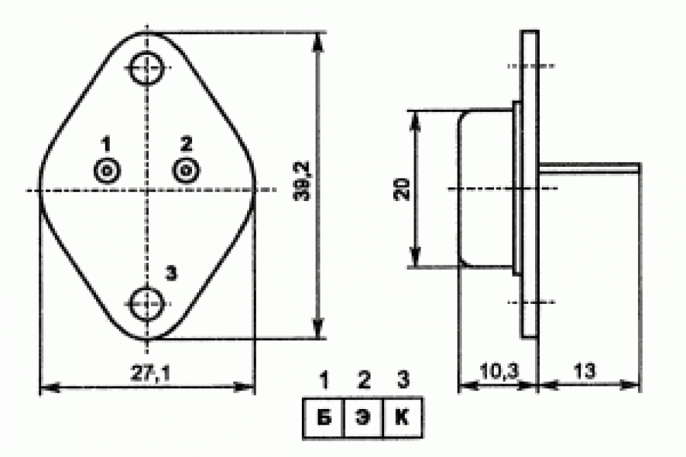 При монтаже на плату, находящуюся под напряжением, вывод базы (Б) должен паяться в первую очередь, а отпаиваться в последнюю. Допустимый статический потенциал до 1 кВ.