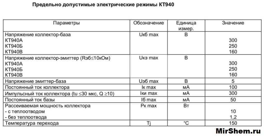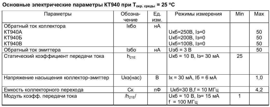 Особенности транзистора КТ940Б
